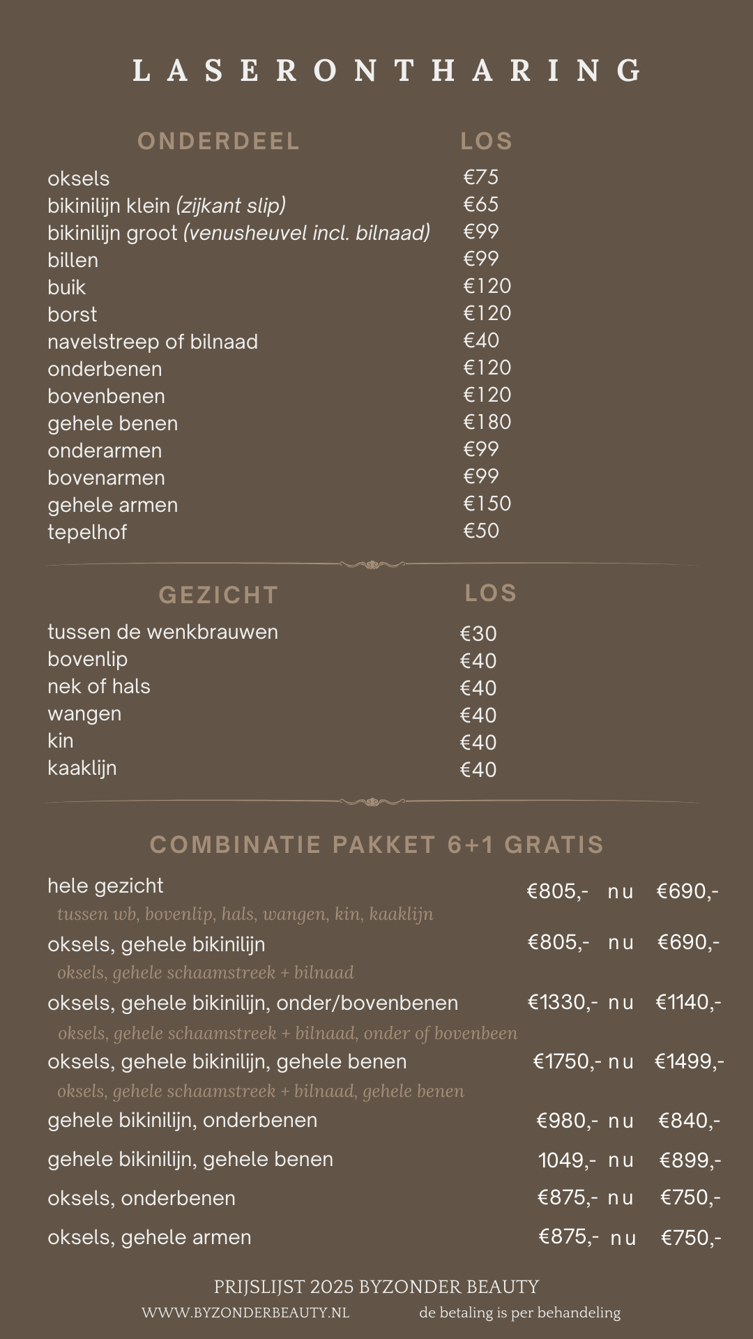 De prijs is per behandeling. Er zijn gemiddeld 6 - 8 behandelingen nodig om het gewenste resultaat te bereiken.